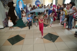 Достық Үйіндегі көрменің ашылуына барлық қатысушы-балалар шақырылды. Балаларды холда Маша, қоян және аю бейнесіндегі аниматорлар қарсы алып, көңілдерін көтерді. Қатысушылар қозғалмалы ойындар ойнады, би биледі, суретке түсті, аниматорлардың күрделі емес сұрақтарына жауап берді.