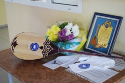 Достық үйінің бөлім басшысы Руслан Мырзағалиев пен облыстық Аналар кеңесі төрағасының орынбасары, А. Байтұрсынов атындағы Қостанай мемлекеттік университетінің оқытушысы Алтыбаева Ақжан ұлық мереке күні нәрестелі болған анаға ұлттық мұра - домбыраны табыс етті.