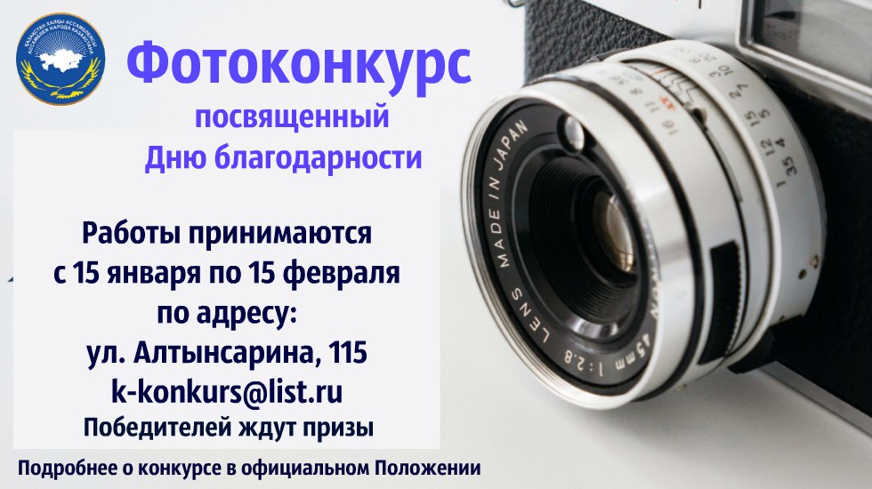 Областная Ассамблея народа Казахстана и Дом дружбы объявляет фотоконкурс посвященный Дню благодарности, который отмечается в Казахстане 1 марта. Это день рождения Ассамблеи народа Казахстана, день милосердия, дружбы и любви всех казахстанцев друг к другу.
