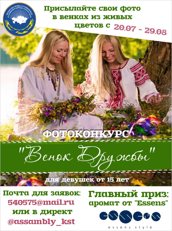 Условия по прежнему просты: нужно прислать фото в венке из ЖИВЫХ цветов на эл.почту 540575@mail.ru либо в директ нашего аккаунта в Инстаграме @assambly_kst. Прием фото осуществляется с 20 июля по 29 августа. Победительницу будем определять посредством голосования в группе ВКонтакте с 30 августа по 2 сентября.