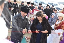 Именно он и хранительница семейного очага Гульжаухар Тулегенова перерезали красную ленточку на торжественной церемонии новоселья, после чего был проведен обряд шашу. В честь такого события представители этнокультурных объединений областной АНК преподнесли от себя сладкий подарок – трехъярусный торт, верхушку которого украсил символический ключ.