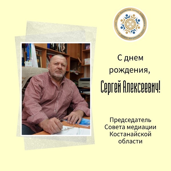 Сегодня свой день рождения отмечает президент ОФ «Ассоциация медиаторов Костанайской области», председатель областного Совета медиации, человек честь и настоящего мужского слова - Сергей Алексеевич Богатырев!