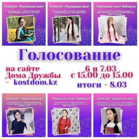 Вы можете отдать свой голос за понравившуюся участницу на нашем официальном сайте www.kostdom.kz, но есть техническое условие - вы должны иметь свою страницу в ВКонтакте. Если у вас нет страницы ВКонтакте, вы можете оставить свой голос, перейдя по данной ссылке - ПРОГОЛОСОВАТЬ. Результаты голосований на обоих платформах будут суммированы.