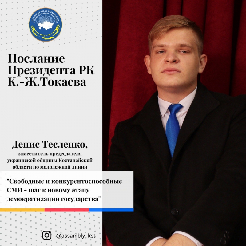 Денис Тесленко, заместитель председателя украинской общины Костанайской общины по молодежной линии: