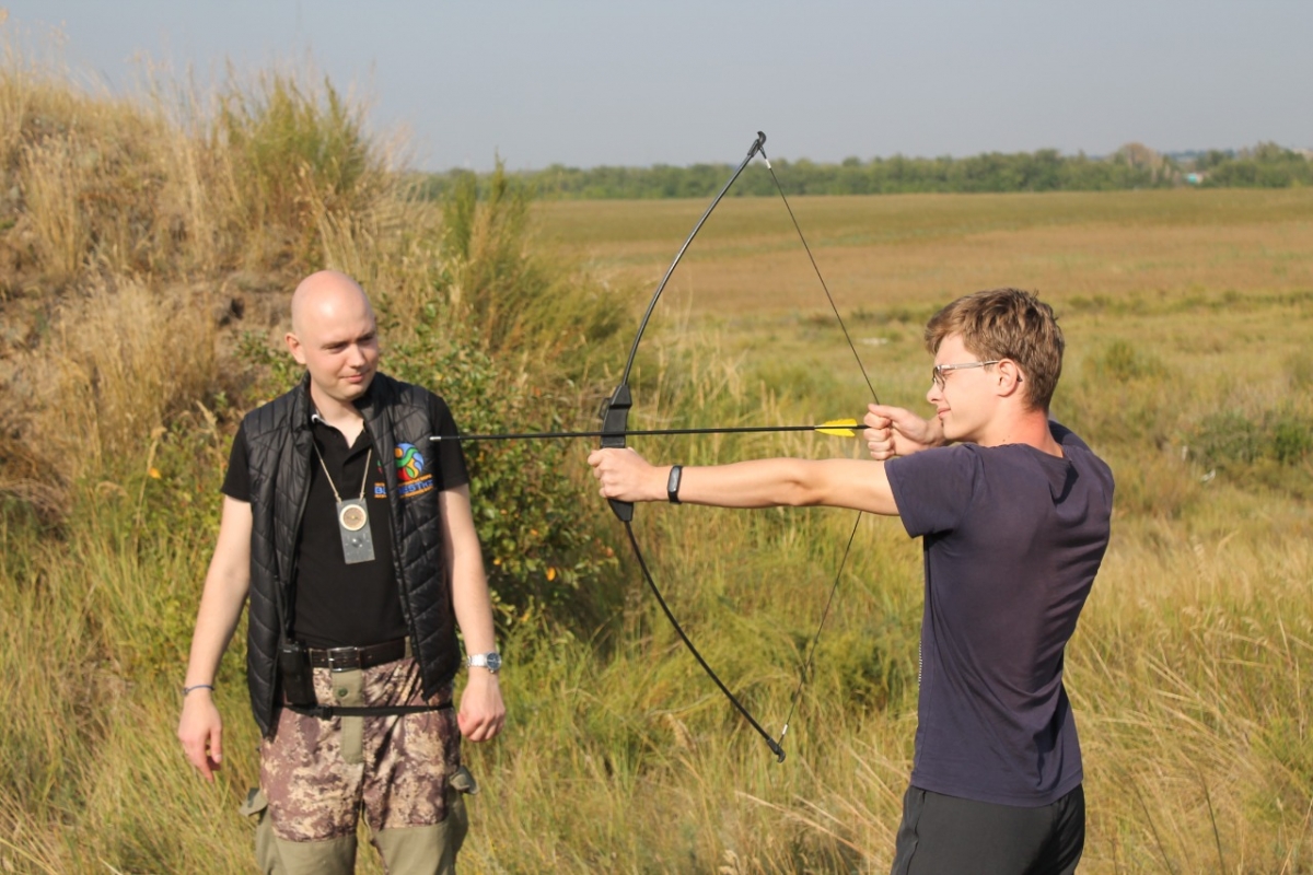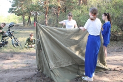 Второй день начался с туристской военно-патриотической эстафеты. Ребятам, разделившимся на команды, нужно было пройти различные этапы: собрать палатку, попасть в цель из лука, набрать очки в стрельбе из пневматического ружья, оказать первую медицинскую помощь «пострадавшему», на скорость собрать и разобрать автомат, показать знания в вязании туристических узлов, на скорость разжечь костер и закипятить воду.