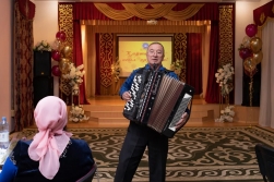Лирические мелодии сменялись зажигательными ритмами лезгинки, корейского танца, казахского «Саржайлау» … Особенным подарком для старшего поколения стали песни, исполненные под гармонь легендарного музыканта Сергея Кобызева.