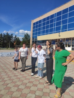 А в завершении для жителей поселка была организована дискотека с национальным уклоном, конкурс танцев и танцевальный мастер-класс. Самые активные участники были отмечены казахскими головными уборами и имиджевыми футболками.