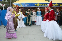 Возле каждой палатки костанайцев и гостей города развлекали представители этнокультурных объединений и школьники. Корейцы били в барабаны и танцевали с драконом. У немцев темп задавали смешные ростовые куклы в национальной одежде. У таджиков сам Холметов и еще два представителя общины играли на национальных инструментах: доира-чилманда и сурнай! Славяне развлекали гармонью и веселыми песнями. Возле казахской палатки можно было услышать мелодии домбры.