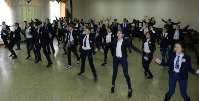 5 февраля в 11 часов в актовом зале школы-лицея №2 г.Костаная 50 учащихся выпускных классов приняли участие в Флешмоб-акции «утренняя зарядка», посвященной 25-летию Независимости Казахстана.
