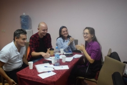 Первый тур оказался для всех игроков довольно сложным – выпадали самые каверзные вопросы. Девушкам из команды «Микс Этно», которая, к слову, второй раз подряд первой играла за круглым столом, удалось «размочить счет» лишь под конец партии, ответив на вопрос о светлячках. Также удачными для них были и несколько последних вопросов. Красавицы-знатоки единственные среди 8-ми команд ответили на вопрос о чеченской лепешке-чепалгаш, которую по свадебной традиции расстреливали в воде, чтобы отвести злых духов от новобрачных.