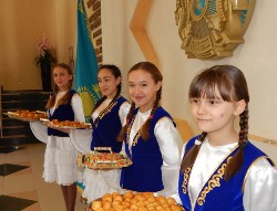 - Казахстан – земля древней цивилизации Евразийского континента, по которой проходили важнейшие торговые пути, связывающие Восток и Запад. Казахский народ волей истории оказался на стыке двух культур, впитав в себя все самое ценное, обретя богатое духовное и культурное наследие, - отметил в своем выступлении председатель казахского этнокультурного объединения Калкаман Жакып. – Мудрость наших предков заключалась во всем, в каждой детали, в каждом орнаменте. Возьмем, к примеру, юрту. Это величайшее и уникальное изобретение номадов. Всемирно известные ученые и искусствоведы, оценивая смекалку степных жителей, на различных этнографических выставках давали самую высокую оценку творчеству казахского народа. Если в юрте изнашивались детали, то они все менялись за исключением шанырака, ведь он играл в жизни казаха особую роль. С ним связывались достаток, счастье, дружба, щедрость в доме и это нельзя было рушить или выбрасывать. К тому же слово «шанырак» трактовалось как «домашний очаг», «дом», «семья». Недаром шанырак занял центральное место на государственном гербе Казахстана, олицетворяя собой образ общего дома всех этносов, проживающих в нашем государстве. А консолидирующая роль в единении и сплочении этносов принадлежит именно казахскому языку, который является душой и достоянием всего народа.