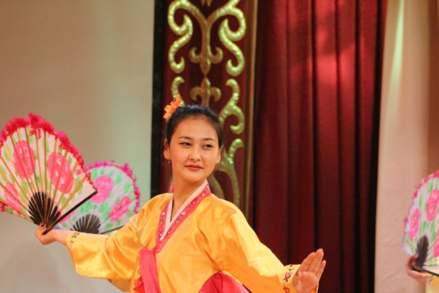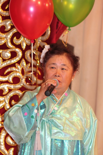 На сцене Дома Дружбы выступил танцевальный коллектив под руководством Юрия Алексеевича Ли. В 2011 году он был удостоен премии Клуба меценатов за плодотворную творческую деятельность. После свои лучшие произведения на корейском, русском и казахском исполнил хор корейской песни «Ен-коди», который с первых дней образования корейского ЭКО принимает активное участие во всех его мероприятиях уже на протяжении более 15 лет. Самыми громкими аплодисментами зрители наградили хористов за знаменитую «Катюшу», переведенную на корейский язык. Затем настал черед для выступлений представителей молодежного крыла – Олеси Ким, Ангелины Цхай и Карины Ольжабаевой, поздравивших бабушек и дедушек своими музыкальными номерами. С поздравительным словом выступила представительница армянской общины «Эребуни» Гаяне Мартиросян, исполнив песню на армянском языке.